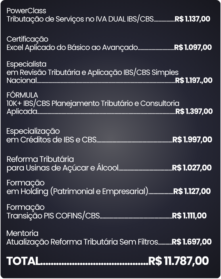 Com certeza! Este combo foi elaborado pensando tanto em profissionais iniciantes como em profissionais que já possuem conhecimentos no setor fiscal. Independentemente do seu nível de experiência, nossos conteúdos e método de ensino abrangem os fundamentos essenciais e também tópicos avançados. Não existe uma fórmula mágica, mas se você se dedicar, estudar, realizar os exercícios propostos e aplicar o conhecimento adquirido na prática, você será capaz de dominar o assunto com sucesso. Estamos aqui para te ajudar em cada etapa do seu aprendizado!