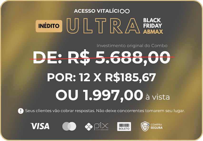 Durante as formações, você terá suporte direto dos facilitadores do combo. Todas as suas dúvidas serão encaminhadas e respondidas na plataforma ABMAX.